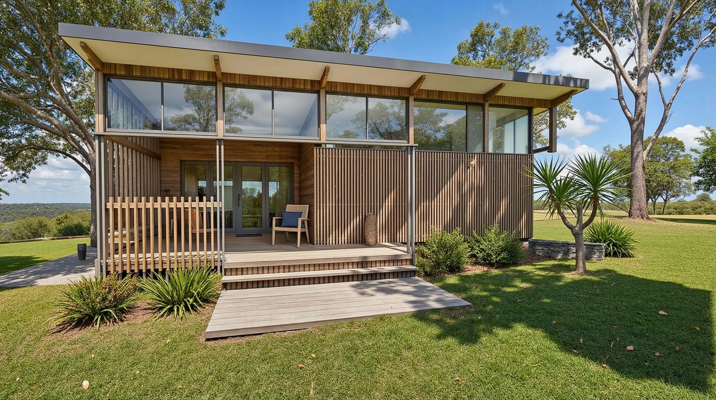 Kelso is a single level, 1 bedroom self contained house or second dwelling for your backyard. With its open living and high level ceiling, it creates more airflow and light into living spaces.