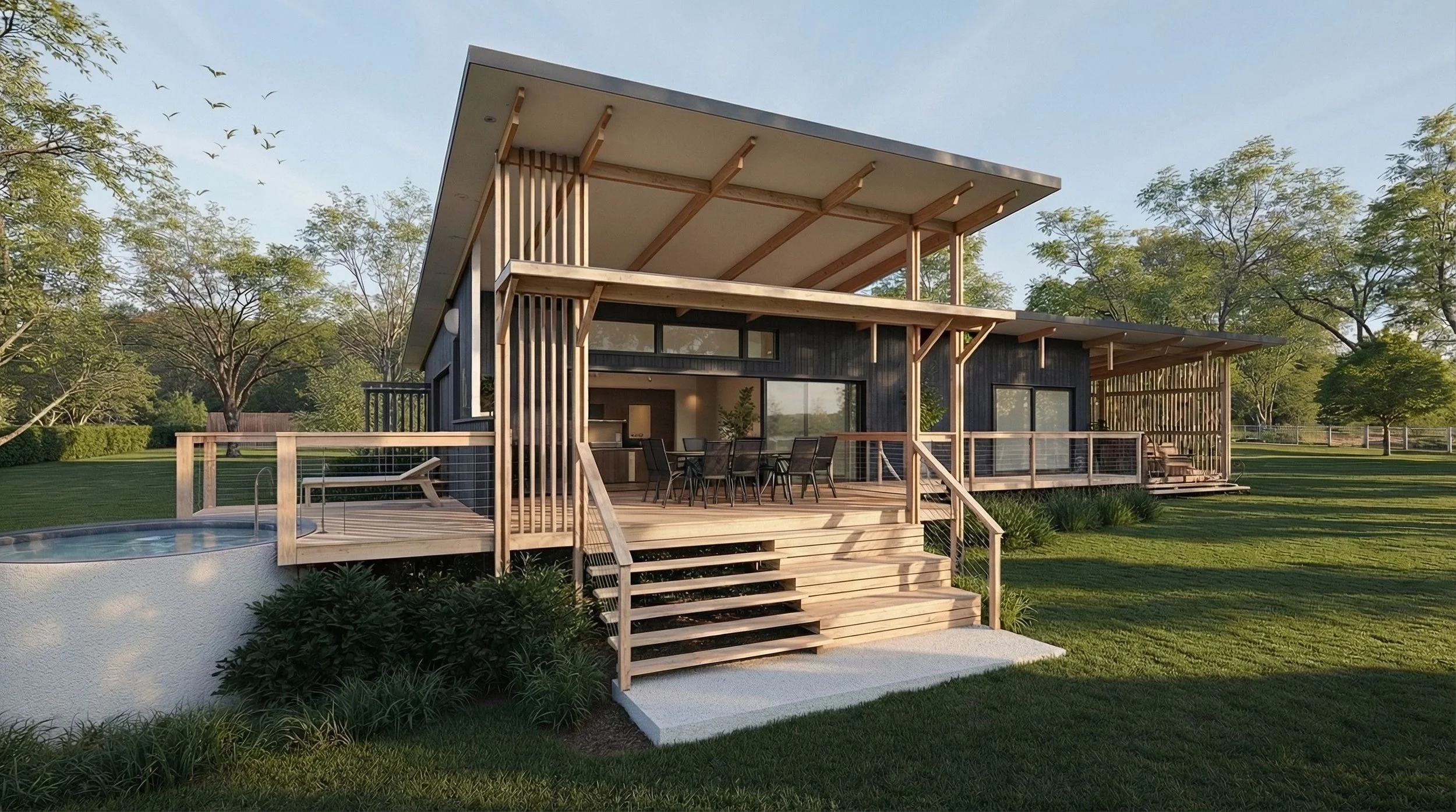 Romney is a 2 bedroom self-contained house designed for a bed and breakfast on an acreage. The brief required a sustainable energy efficient design and choice of materials.